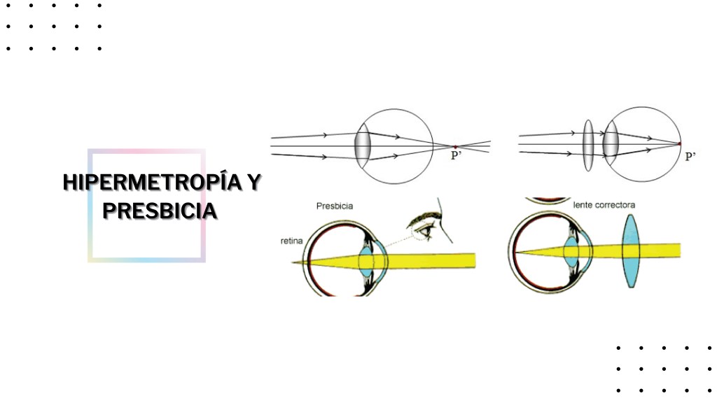 Hoy continuamos con los defectos refractivos. Podríamos decir que la hipermetropía es lo contrario a la miopía, ya que en la miopía los rayos de luz focalizan delante de la retina y en la hipermetropía focalizan detrás de la retina, en ese orden de ideas en la miopía se ve borroso de lejos y la hipermetropia afecta la forma en que vemos los objetos cercanos.